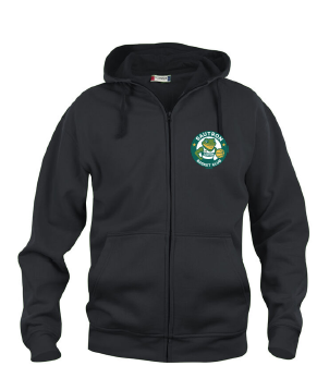 Basic Hoddy zippé , Homme ou Femme, avec capuche et poches ventrales, couleur: noir, nouveau logo du club floqué