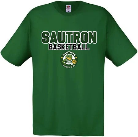 T-Shirt basic, taille Homme, Femme ou Enfant, couleur vert bouteille, avec Sautron Basketball + nouveau logo floqué